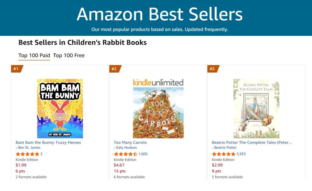 The book also ranked above well-known contemporary and classic titles in the Children’s Rabbit eBooks category, including Too Many Rabbits by Katy Hudson, as well as The Complete Tales of Beatrix Potter by Beatrix Potter.