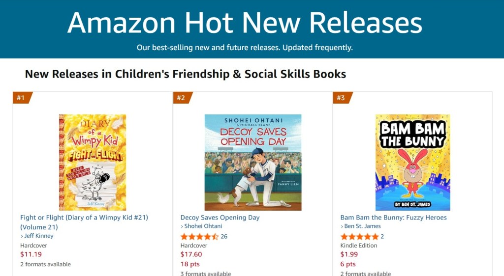The Paperback version also had a strong chart showing reaching #13 in Children’s Rabbit Books and #3 in New Releases in Children’s Rabbit Books and #3 New Releases in Children’s Friendship & Social Skills Books.